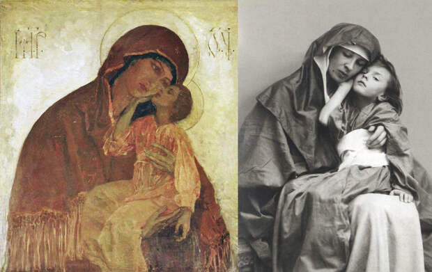 Прообразом Богоматери "Умиление" для иконостаса церкви Покрова Богородицы Марфо-Мариинской обители Михаилу Нестерову послужила его жена Екатерина, а маленького Христа художник списал со своей дочери Наташи.